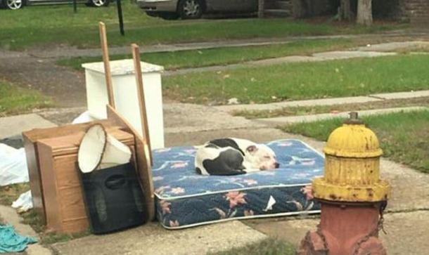O fotografie cu un câine care își aștepta stăpânul pe salteaua unui pat, în mijlocul străzii, a emoționat mii de utilizatori ai rețelelor sociale.