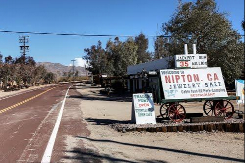 Nipton, care are în prezent o populaţie formată din 20 de persoane, se află în districtul San Bernardino, lângă Parcul Naţional Mojave, la graniţa cu Nevada. Din Los Angeles se poate ajunge cu maşina în 3 ore, iar din Las Vegas se face doar o oră.