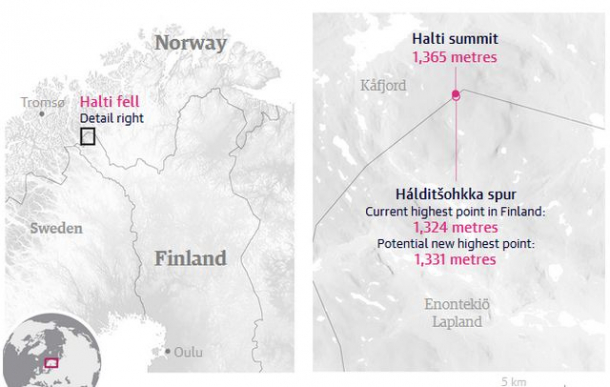 Mutarea graniţei cu aproximativ 40 metri mai departe de linia montană, ar plasa vârful de 1.331 m al Hálditšohkka în Finlanda, depăşind actualul cel mai înalt punct al ţării cu 7 metri.