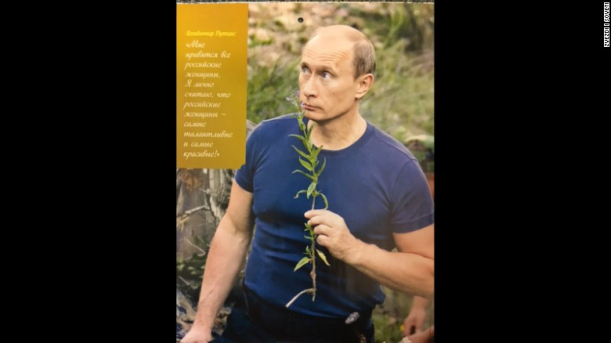 În luna martie, Putin miroase o floare și felicită femeile pentru 8 Martie, în luna iunie, liderul de la Kremlin apare într-o poză înconjurat de copii care îi cer autografe, iar în luna iulie este prezentat așa cum rar se întâmplă, el pescuind la bustul gol. În luna octombrie, președintele este îmbrăcat în uniformă militară, iar alături de poză apare următorul mesaj: „Nimeni nu va reuși vreodată să depăşească superioritatea militară a Rusiei”.