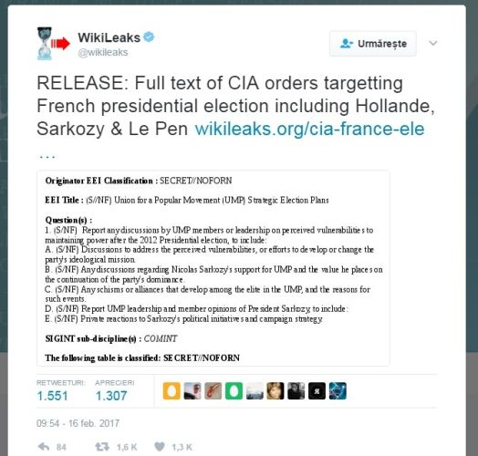 Wikileaks dezvăluie ordinele CIA de SPIONAJ ale alegerilor prezidențiale din FRANȚA