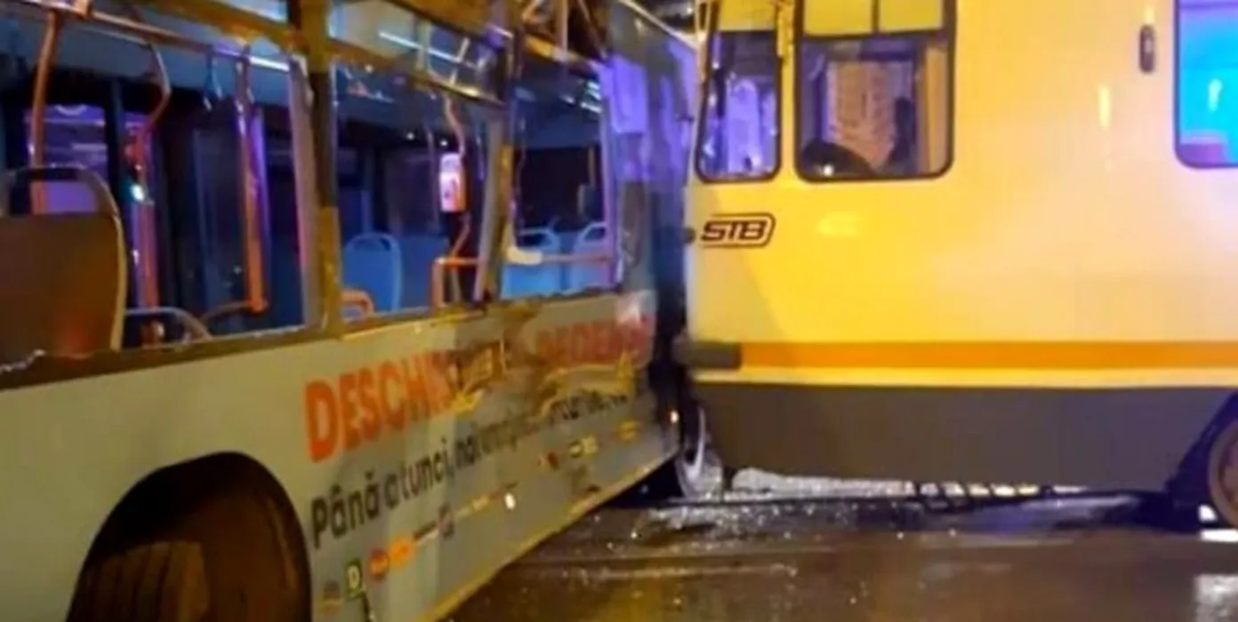 Accident în Capitală între un autobuz al STB și un excavator. Mai mulți pasageri au ajuns au suferit răni ușoare