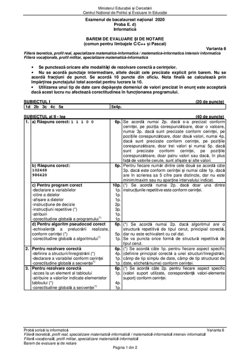 Bacalaureat 2020. Baremul de corectare la Informatică