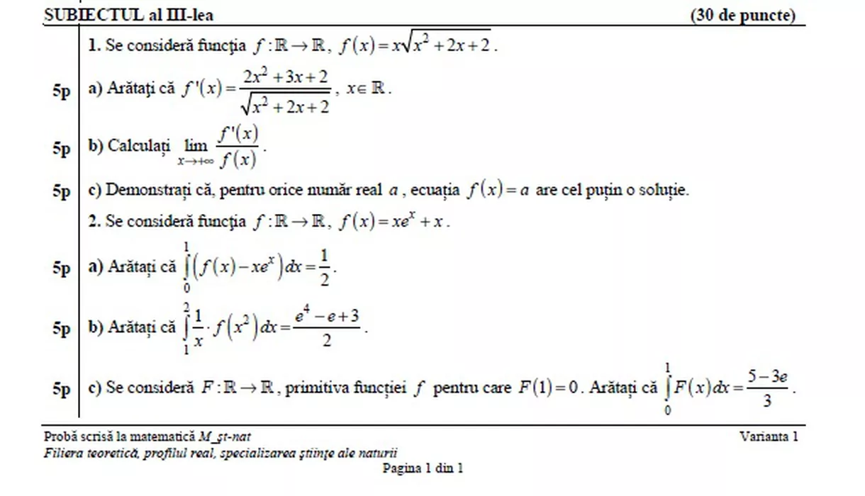 Bacalaureat 2020, sesiunea speciala. Subiectele care au picat la Matematică