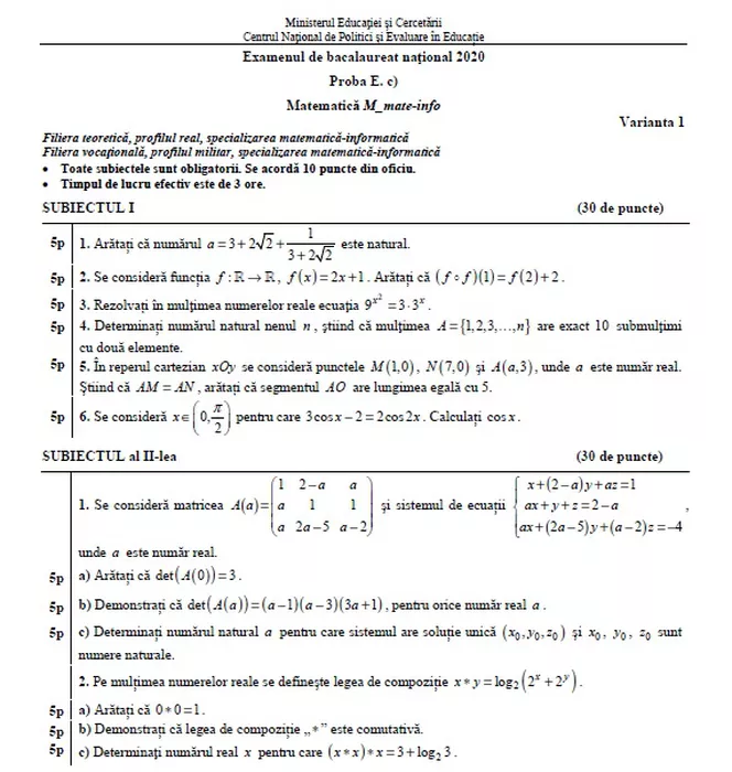 Bacalaureat 2020, sesiunea speciala. Subiectele care au picat la Matematică