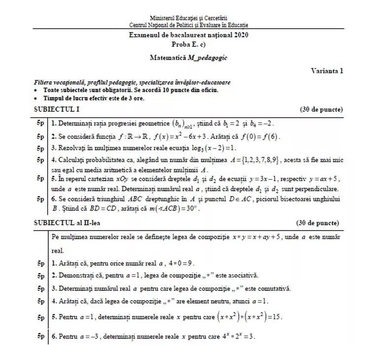 Bacalaureat 2020, sesiunea speciala. Subiectele care au picat la Matematică