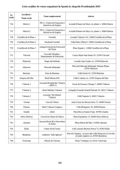 DIASPORA VOT / SPANIA Secţii de votare / ALEGERI PREZIDENŢIALE 2019. Unde votează românii din Dispora în Spania