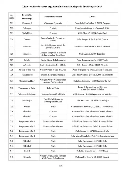 DIASPORA VOT / SPANIA Secţii de votare / ALEGERI PREZIDENŢIALE 2019. Unde votează românii din Dispora în Spania
