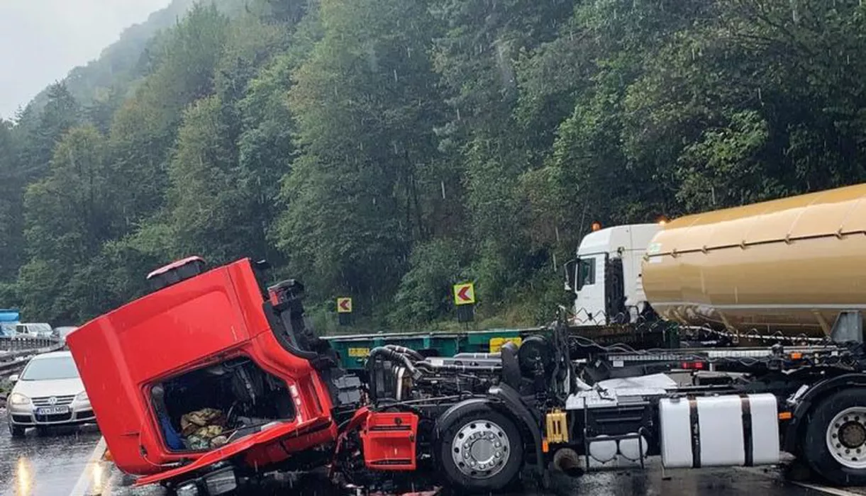 TIR răsturnat pe Valea Oltului. Trafic restricționat în zonă (FOTO)