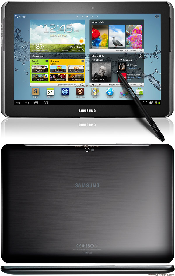 Apple iPad 2 măsoară 241,2 mm lungime, 185,7 mm lățime, 8,8 mm grosime și cântărește aproximativ 607 g. De cealaltă parte, Note 10.1 are 256,7 mm lungime, 175,3 mm lățime, 8.9 mm grosime și cântărește aproximativ 583 g. iPad 2 utilizează un display IPS TFT LED backlit cu rezoluția de 768 x 1024 pixeli, mărimea de 9,7 inch și o claritate de 132 ppi. Note 10.1 folosește un afișaj PLS TFT cu rezoluția resolution 800 x 1280 pixeli și claritatea de 149 ppi. Are un ecran mai mare, de 10.1 inch. În ciuda clarității mai mari a lui Note (149 ppi) display-ul iPad-ului este considerat mai bun de cei care au folosit tableta, cu grafică de excepție și text afișat cât se poate de clar. De asemenea, display-ul său este acoperit de sticlă rezistentă la zgârieturi.![]()