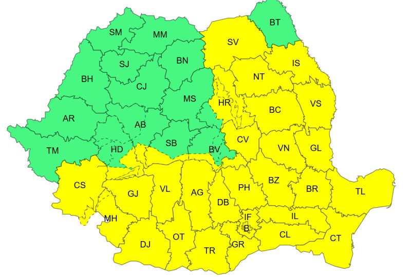 Atenționarea emisă de Administrația Națională de Meteorologie se aplică pentru 20 de județe din Dobrogea, Moldova, Muntenia și sud-estul Transilvaniei, dar și pentru municipiul București. Intervalul de valabilitate începe duminică dimineață și se extinde până luni, la aceeași oră.