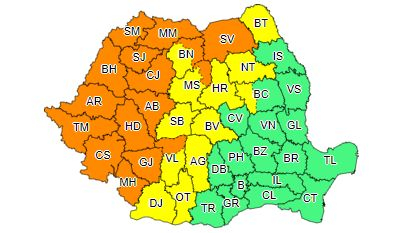 ANM a emis două coduri galbene și unul portocaliu de instabilitate atmosferică accentuată