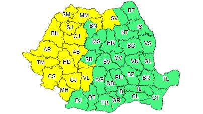 Administrația Națională de Meteorologie a emis două coduri galbene de instabilitate atmosferică temporar accentuată și un cod portocaliu de instabilitate atmosferică accentuată și cantități de apă însemnate. Avertizările vizează mare parte din țară, cu excepția sud-estului. În acest weekend, temperaturile se anunță a fi mai coborâte decât cele specifice acestui interval mai ales în regiunile vestice şi nord-vestice. În sud-estul țării, în schimb, temperaturile medii vor fi apropiate de cele normale pentru această perioadă.