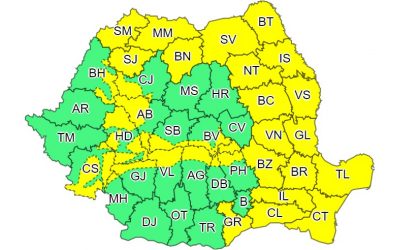 Administrația Națională de Meteorologie a emis un nou cod galben de ploi torențiale, valabil până sâmbătă seară la ora 22:00.