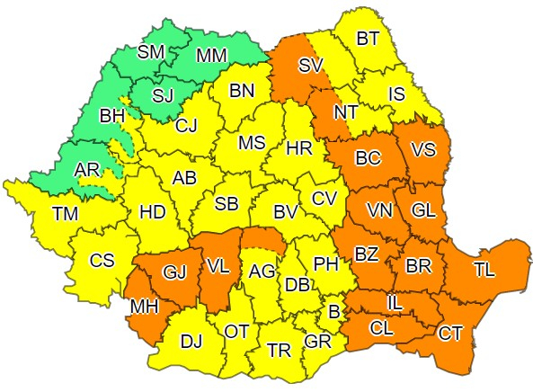 Al doilea cod portocaliu, valabil până duminică, la miezul nopții