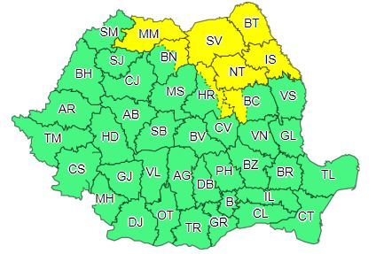 Meteorologii ANM au anunțat vreme instabilă, în partea de nord – est a țării. Codul galben este valabil până la 22:00, și începe la ora 12:00 în data de 16 august.