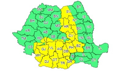 Meteorologiii anunță averse ce vor avea și caracter torențial, descărcări electrice, intensificări de scurtă durată ale vântului, vijelii și, izolat, grindină, mai ales în zonele de deal și de munte, precum și în sudul, centrul și estul teritoriului.