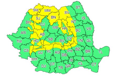 „În nordul, centrul și vestul țării temporar vor fi precipitații, moderate cantitativ, iar cantitățile de apă, acumulate pe tot parcursul intervalului, vor depăși local 20…30 l/mp și izolat 40…50 l/mp, cu precădere în zona deluroasă și montană aferentă.