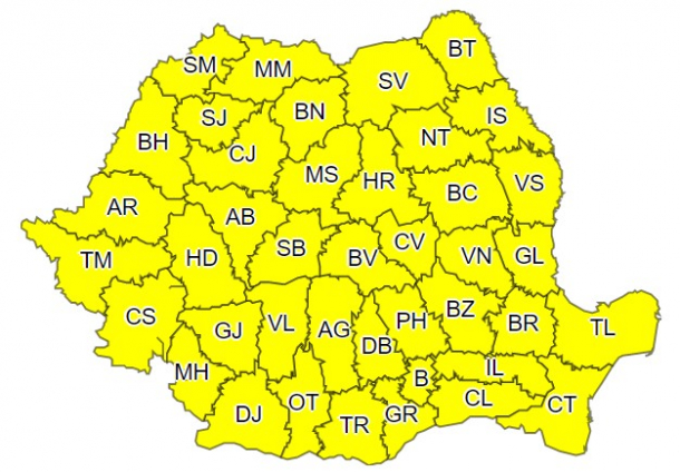 Cod galben de vreme rea în toată țara
