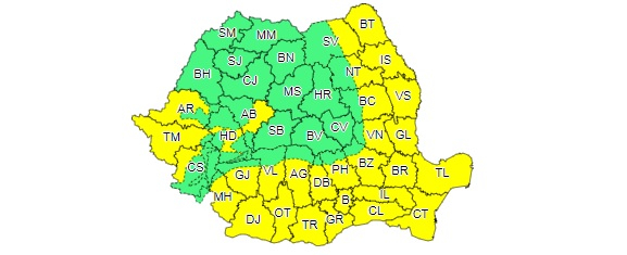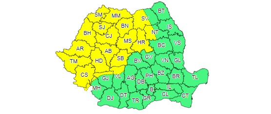 A doua avertizare cod galben este valabilă în intervalul 1 septembrie, ora 03 – 1 septembrie, ora 23.