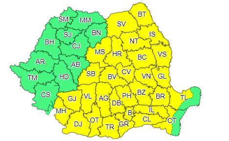 Meteorologii ANM au emis mai multe avertizări meteo, valabile în următoarele zile. Astfel, România se află între două extreme, în jumătate din țară este valabilă o atenționare de tip cod galben de caniculă, în timp ce alte 11 județe sunt sub cod portocaliu de vijelii și furtuni.