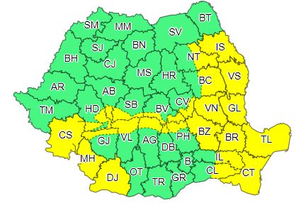 „În intervalul menționat, în estul, sud-estul și sud-vestul țării, local și temporar vântul va avea intensificări, cu viteze de 55…60 km/h, iar în jumătatea de sud a Moldovei, Dobrogea și estul Munteniei, rafalele vor depăși 70 km/h.