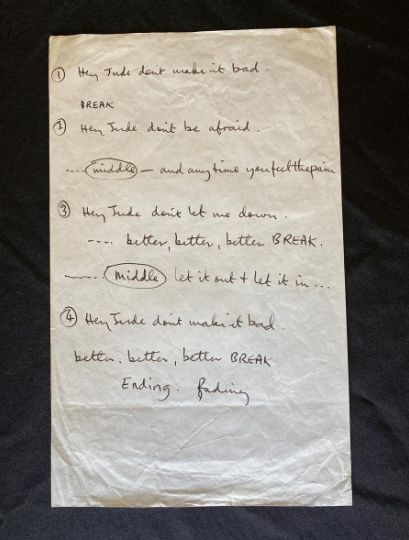 Paul McCartney a fost unul dintre vocaliștii trupei Beatles, iar acum versurile pe care acesta le-a scris pentru celebrul cântec „Hey Jude” s-au vândut cu 910.000 de dolari. Cu multpeste aștepările casei de licitații. Notițele lui Paul McCartney au fost scrise în 1968 pentru o înregistrare în studio, potrivit Reuters.