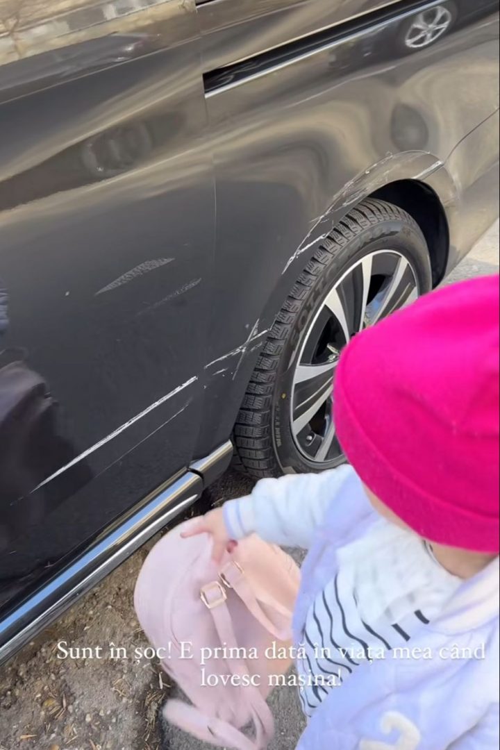 Din fericire, nici vedeta și nici fiica sa nu au pățit nimic, fiind vorba doar despre o zgârietură în partea laterală a autovehiculului.
