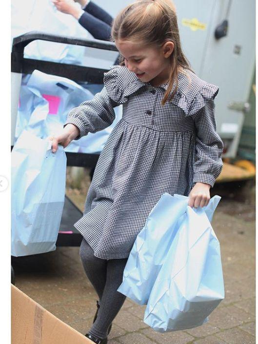 În ceea ce o privește pe Prințesa Charlotte, fotografiile au fost realizate în timp ce familia regală britanică a ajutat la ambalarea și livrarea unor pachete cu alimente pensionarilor izolați din zona locală.
