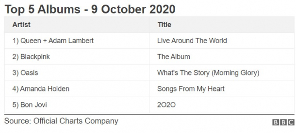 Queen a revenit pe locul 1 în topurile dindin Marea Britanie,după 25 de ani, cu cel de-al 8-lea album,Trupa a ajuns în topul albumelor cu „Live Around The World”, concurența actuală:K-pop, Blackpink și Spice Girl, Melanie C.