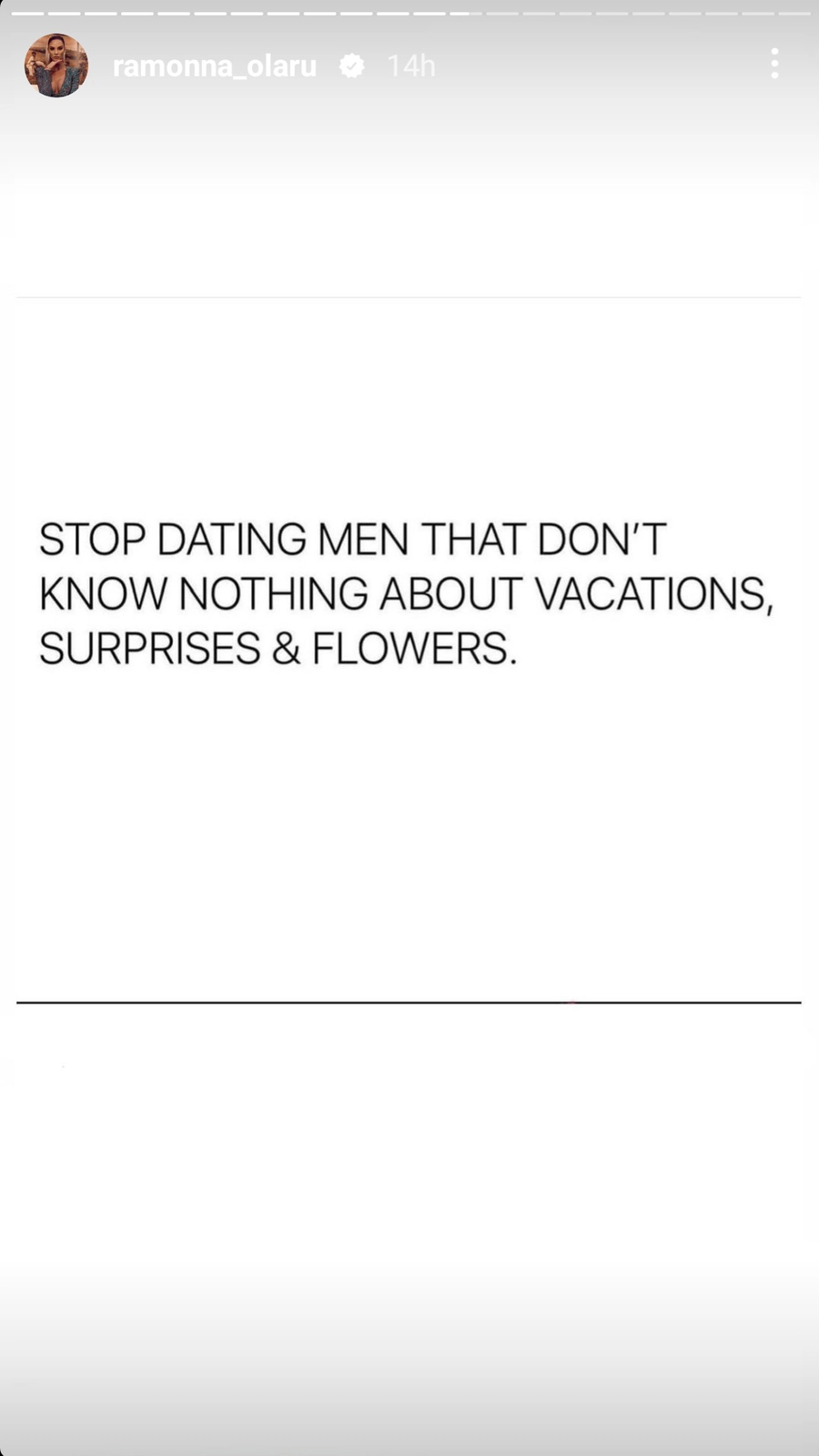 Înainte de această postare însă, Ramona Olaru a mai făcut public un mesaj prin intermediul căruia pare să le dea sfaturi doamnelor și domnișoarelor care o urmăresc.