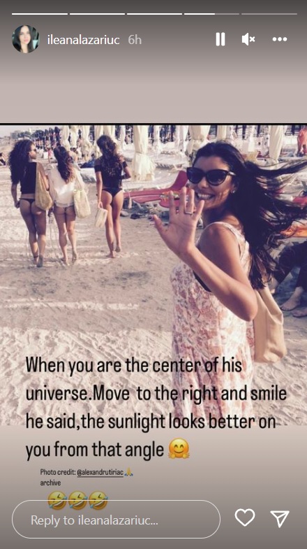 „Când ești centrul universului său. Dă-te mai la dreapta și zâmbește, a spus el, lumina soarelui arată mai bine pe tine din acel unghi”, a scris Ileana Lazariuc într-un story pe Instagram, ținând să menționeze că fotografia vine din „arhiva” lui Ion Ion Țiriac.