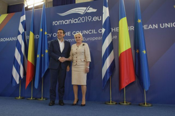 Premierul Viorica Dăncilă l-a primit vineri, la Palatul Victoria, pe omologul său grec, Alexis Tsipras.