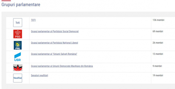 Iată care este situația pe grupurile parlamentare din Camera Deputaților și Senat. Conform datelor de pe pagina Camerei Deputaților, PSD are 133 de membri în timp ce minoritățile au 17 deputați, în timp ce alți 8 sunt neafiliți. De aici, Viorica Dăncilă mai poate atrage câțiva susținători.