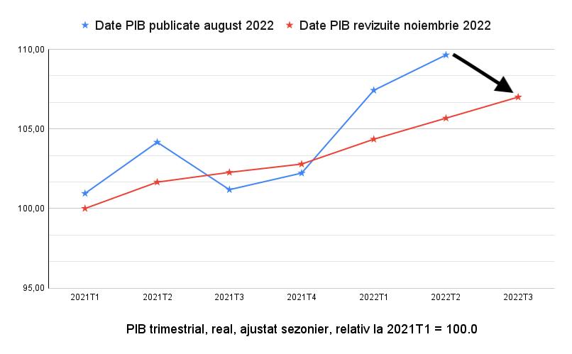 Ce nu spune nici INS, nici premierul, este că de fapt PIB-ul pe T3 a scăzut cu 2,41% față de cât anunțaseră acum 3 luni că este PIB-ul pe T2.