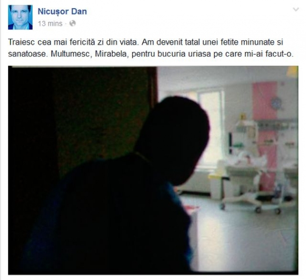 Nicușor Dan, candidatul USB la Primaria Capitalei, a devenit, la finele săptămânii trecute, pentru prima dată tată. Acesta a făcut anunțul cel mare pe Facebook.