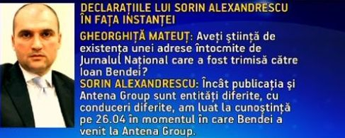 Directorul Antena Grup a afirmat că nu există niciun schimb de informații între Antena Grup și Intact Publishing (Jurnalul Național) și că a luat cunoștință de adresa trimisă de Jurnalul către RCS/RDS abia pe 26 aprilie, când s-a întâlnit cu Ioan Bendei.