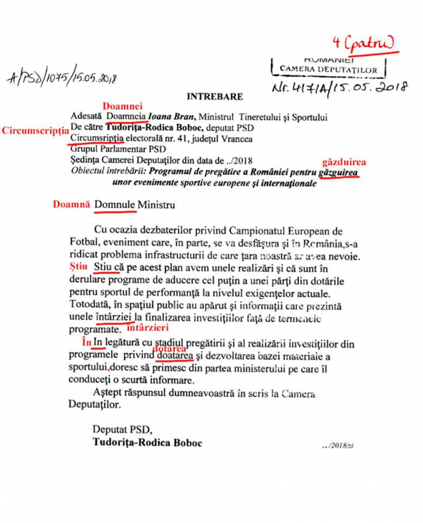 Într-o interpelare adresată ministrului Tineretului și Sportului, Ioana Bran, Rodica Boboc a demonstrat că are reale dificultăți în a se adresa în limba română.