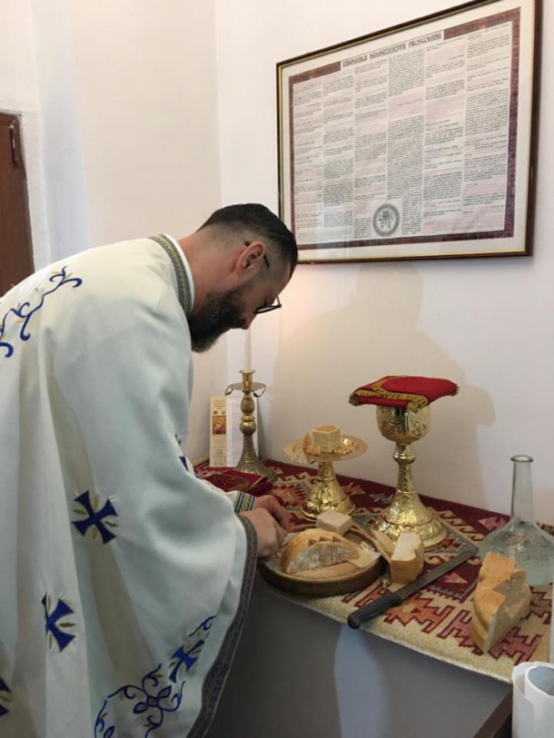 La Mănăstirea Cașin, părintele Cazacu a făcut cele rânduite: “taina” proscomidiei și sfințirea ramurilor de salcie, simbol al biruinței asupra morții.