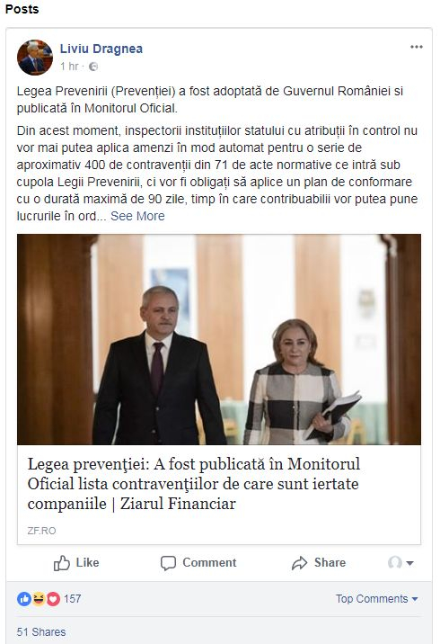 Liderul social-democraților a vrut să se laudecu adoptarea Legii prevenției, dar a scris că aceasta a fost adoptată de Guvernul României.