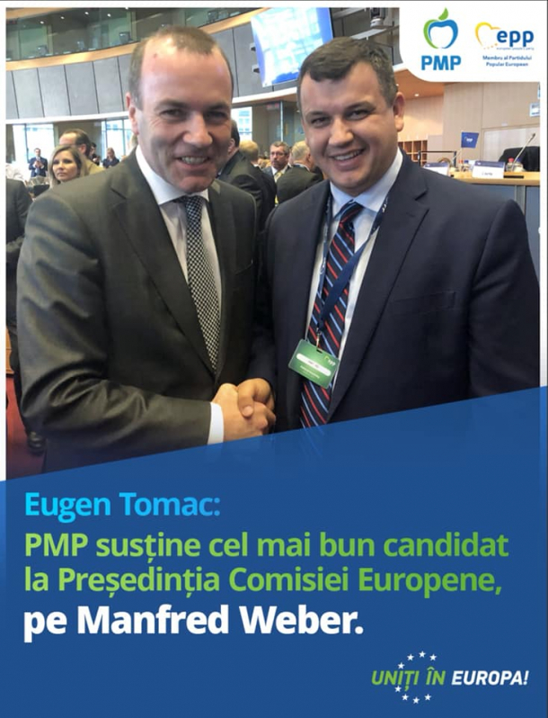 Președintele PMP, Eugen Tomac, a declarat că partidul pe care îl conduce îl susține pe Manfred Weber în cursa pentru șefia Comisiei Europene.