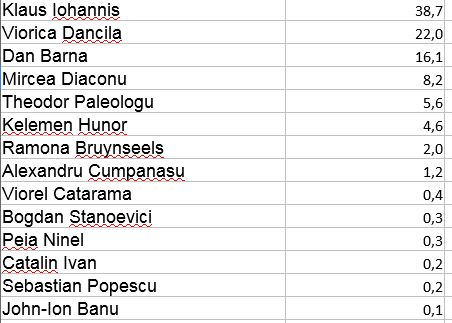 Dan Barna este clasat al treilea, cu 16,1% din voturi.
