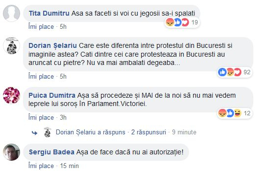 „D-na Ministru pe cand si la noi aceelasi tratament derbedeilor din piata si tara!”, „De ce nu puneți în practică?? Doamnă Ministru”, „Asa trebuie procedat si la noi daca mai iese pe strazi fara aprobare!”, „Asa sa faceti si voi cu jegosii sa-i spalati” – sunt doar câteva comentarii la filmulețul distribuit.