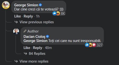 George Simion, copreședintele AUR, a replicat la postarea lui Cioloș: