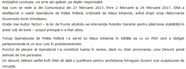 Acesta spune că ancheta are loc cu un întreg spectacol, așa cum DNA a obișnuit.