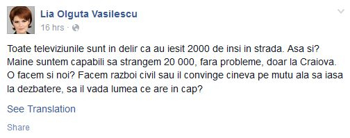 Totodată, primarul din Craiova se întreabă ironic dacă este nevoie de „război civil” sau îl convinge „cineva pe mutu’ Iohannis „să iasă la dezbatere”. „Toate televiziunile sunt în delir că au ieșit 2000 de inși în stradă. Așa și? Mâine suntem capabili să strângem 20 000, fără probleme, doar la Craiova. O facem și noi? Facem război civil sau îl convinge cineva pe mutu ăla să iasă la dezbatere, să îl vadă lumea ce are în cap?”, a scris Vasilescu pe contul său de Facebook.