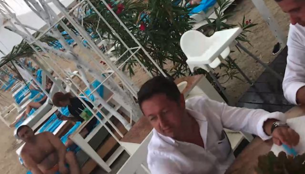 Cei de la Cancan l-au fotografiat pe „plaja milionarilor” din Mamaia unde a venit îmbrăcat în haine de firmă la care a asortat un ceas Roger Dubuis, estimat la peste 15.000 de euro.