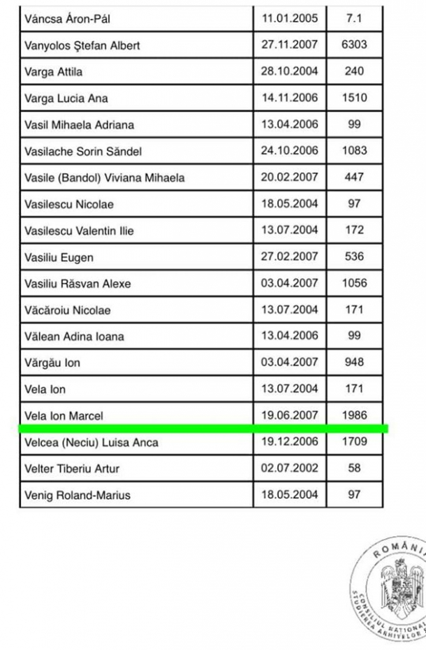 Precizările vin în contextul în care în mediul online au început să circule informații potrivit cărora Vela ar fi devenit, în 1987, informator al Securității.