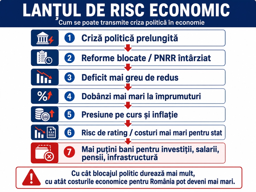 Piețele pot digera o schimbare de guvern dacă există rapid o formulă predictibilă. Ce nu pot digera este incertitudinea: Guvern interimar, reforme amânate, lipsă de majoritate, negocieri sterile și riscul ca România să rateze jaloane europene.