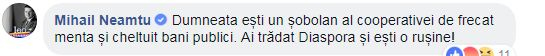 Dar Neamțu a considerat că Voicu se referă la el, așa că a replicat: “Dumneata ești un șobolan al cooperativei de frecat menta și cheltuit bani publici. Ai trădat Diaspora și ești o rușine”.